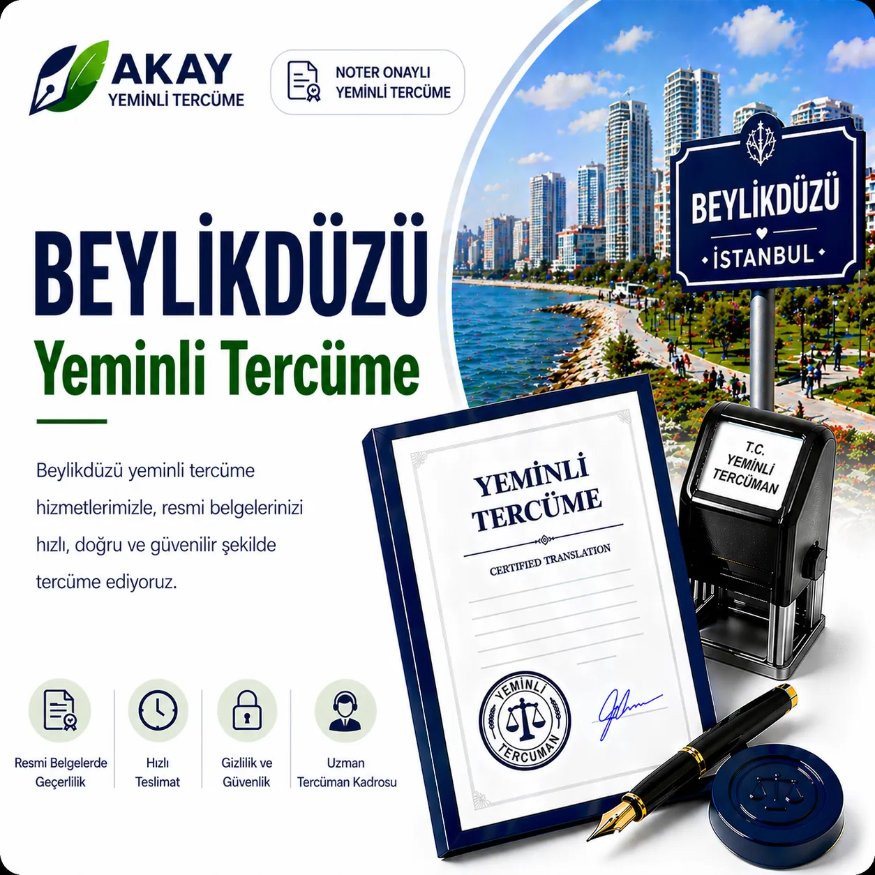 Beylikdüzü ve İstanbul çevresinde yeminli tercüme, noter onaylı tercüme ve acil tercüme talepleri için hızlı destek alın. Akay Tercüme Bürosu, resmi evrak, özel belge ve kurumsal metinlerde hızlı teklif ve profesyonel tercüme desteği sağlar.