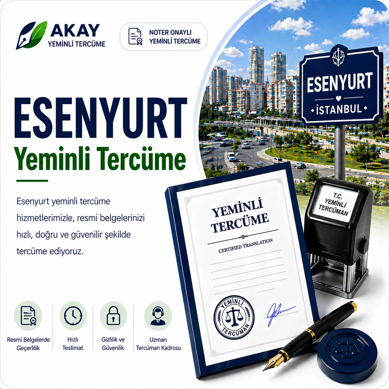 Esenyurt ve İstanbul çevresinde yeminli tercüme, noter onaylı tercüme ve acil tercüme talepleri için hızlı destek alın. Akay Tercüme Bürosu, resmi evrak, özel belge ve kurumsal metinlerde hızlı teklif ve profesyonel tercüme desteği sağlar.