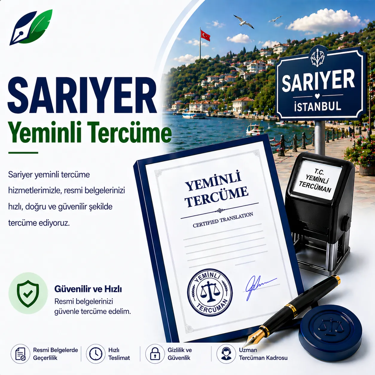 Sariyer İstanbul için yeminli, kaşeli ve noter onaylı tercüme işlemlerinizde belgenizi gönderin; kısa sürede net fiyat ve teslim süresi alın.
